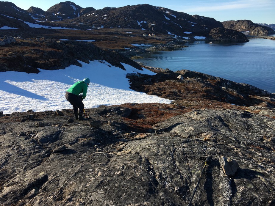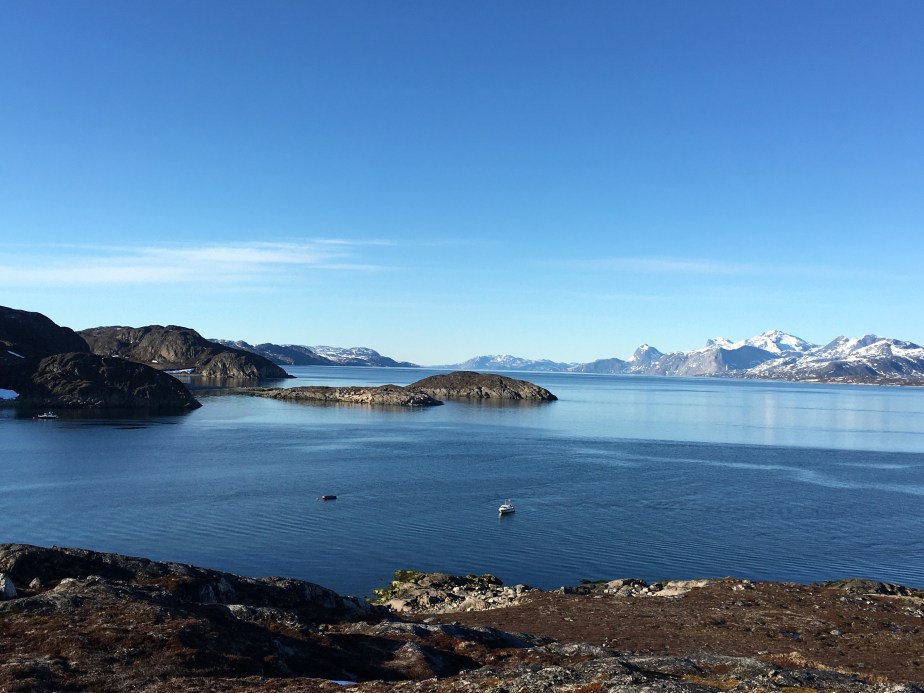 01/06/2021: The view that will be from our cabin toilet of Sermitsiaq. A poop with a view!01/06/2021: The view that will be from our main window looking up-fjord01/06/2021: The view that we will have from our kitchen window looking inland to our neighbours01/06/2021: A spot of dinner before our evening looking at foundation points for the cabin site. We went out after work on a very calm and warm day01/06/2021: Marking out foundation points. These are just rough locations for now, which will be refined later on